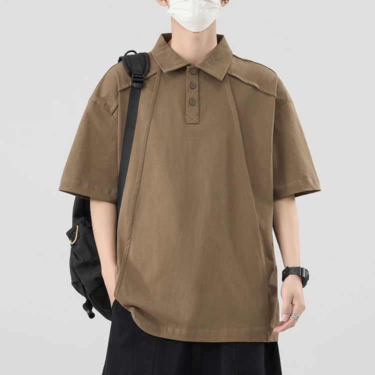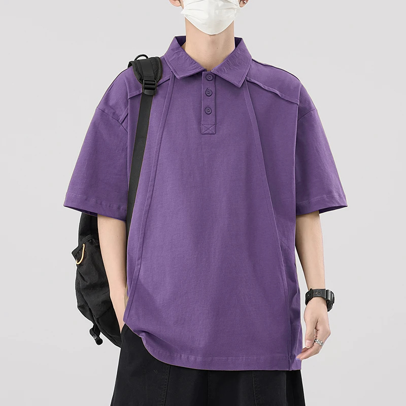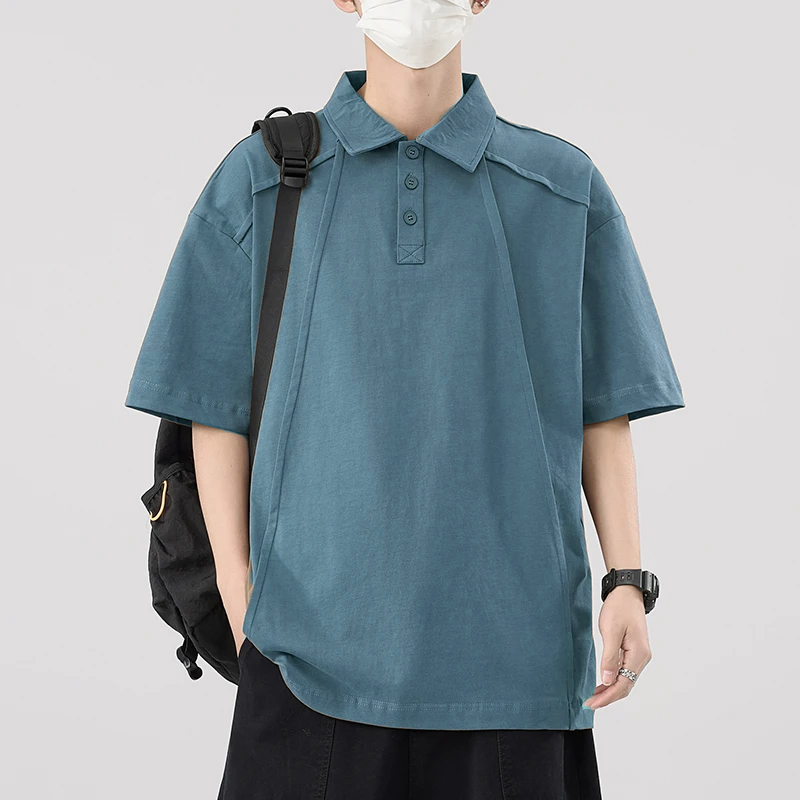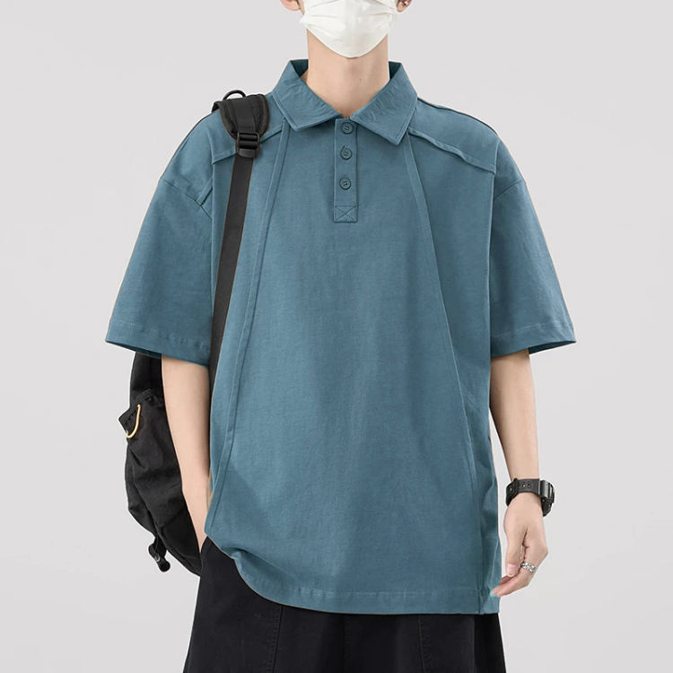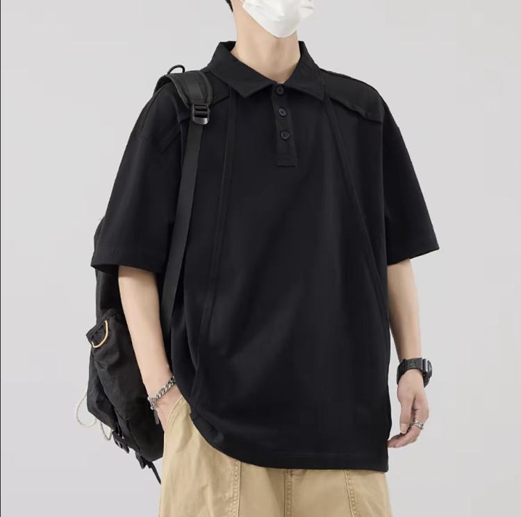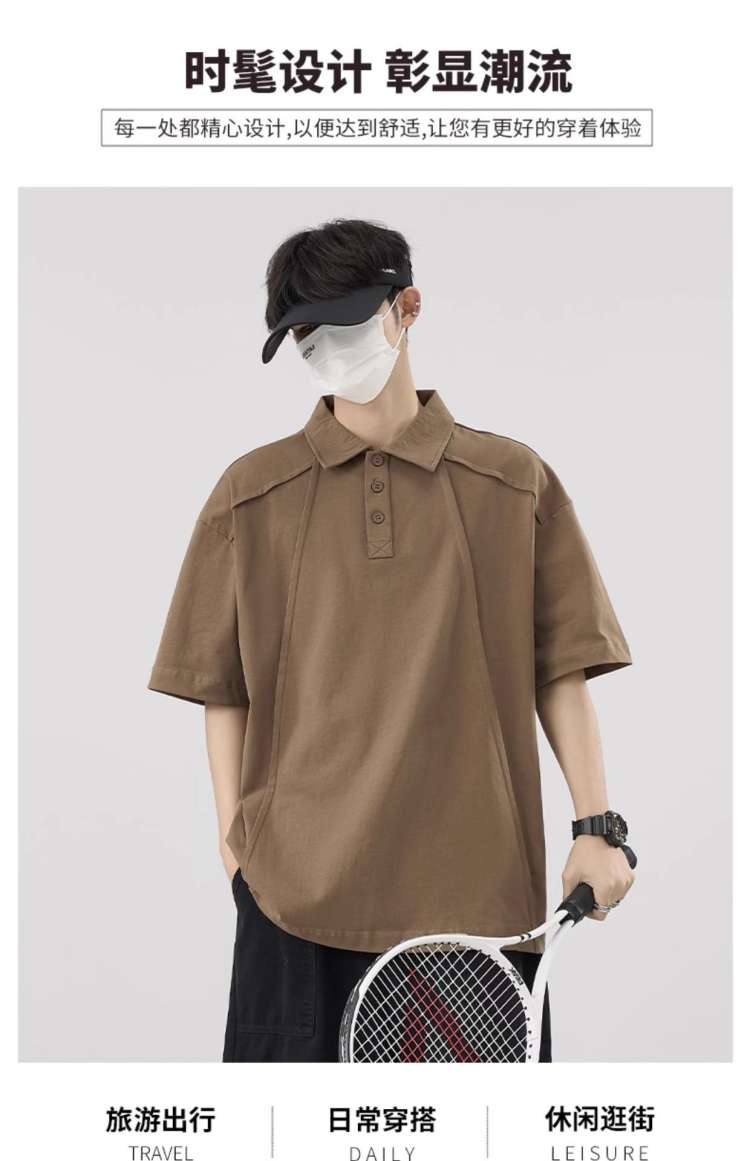 男士夏季純棉寬鬆新款短袖休閒重磅拼接半袖T卹